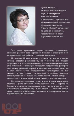 По мнению автора, у каждого из нас есть пограничные способы реагирования, но у кого-то они глубоко запрятаны, а для кого-то стрессом является жизнь как таковая, и потому эти способы превращаются в «пограничную организацию личности». Психиатры и сихоаналитики помещают «пограничников» между невротиками (условно психически здоровыми людьми) и психотиками (психически нездоровыми). Задача автора - понять качественные особенности структуры психики таких людей. Первая часть книги посвящена феноменологии: анализу условий,в которых формируются такие особенности психики, способов обхождения «пограничника» с собой, с окружающими, с миром. Во второй части описаны особенности психотерапевтической помощи таким клиентам.