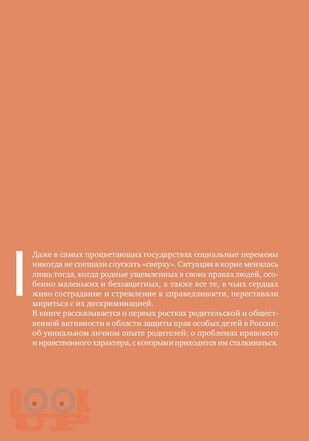 В книге рассказывается о первых ростках родительской и общественной активности в области защиты прав особых детей; об уникальном личном опыте родителей; о проблемах правового и нравственного характера, с которыми приходится им сталкиваться. Описывается опыт ведения родительских групп в Центре лечебной педагогики (Москва).