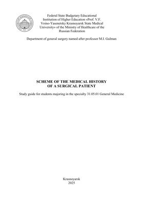 Scheme of the medical history of a surgical patient : study guide for students majoring in the specialty 31.05.01 General Medicine / Ю. С. Винник, В. В. Деулина, Н. С. Штоппель и др. - Красноярск : КрасГМУ, 2025. - 81 c. - Текст : электронный // ЭБС "Букап" : [сайт]. - URL : https://www.books-up.ru/en/book/scheme-of-the-medical-history-of-a-surgical-patient-19616446/ (дата обращения: 26.02.2026). - Режим доступа : по подписке.