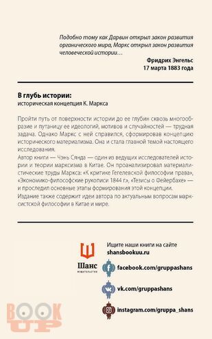Сяньда Ч. В глубь истории: историческая концепция К. Маркса / Ч. Сяньда, А. А. Попов, М. С. Яковенко. - М. : Международная издательская компания "Шанс", 2019. - 463 c. - ISBN 9785907015043. - Текст : электронный // ЭБС "Букап" : [сайт]. - URL : https://www.books-up.ru/en/book/v-glub-istorii-istoricheskaya-koncepciya-k-marksa-18154173/ (дата обращения: 17.11.2025). - Режим доступа : по подписке.