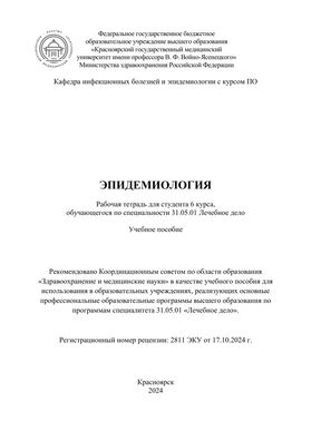 Рабочая тетрадь разработана в рамках дисциплины «Эпидемиология», отвечает требованиям ФГОС ВО для студентов высших учебных заведений, обучающихся по специальности 31.05.01 Лечебное дело.