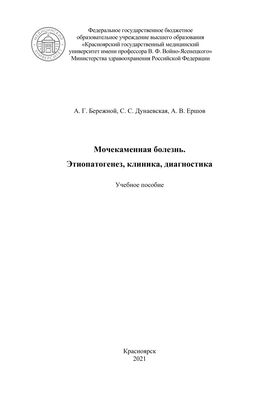 Бережной А. Г. Мочекаменная болезнь. Этиопатогенез, клиника, диагностика : учебное пособие / А. Г. Бережной, С. С. Дунаевская, А. В. Ершов. - Красноярск : КрасГМУ, 2021. - 69 c. - Текст : электронный // ЭБС "Букап" : [сайт]. - URL : https://www.books-up.ru/ru/book/mochekamennaya-bolezn-etiopatogenez-klinika-diagnostika-19683983/ (дата обращения: 26.02.2026). - Режим доступа : по подписке.