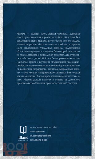 В издании всесторонне рассмотрены вопросы морали, связь морали с экономикой и механизмы их взаимодействия. Представлена концепция морального капитала, проанализированы его особенности и формы. Большое внимание уделено практическим вопросам формирования морального капитала предприятий и критериям его оценивания, показаны роль и основные задачи морального капитала в функционировании и развитии предприятий.