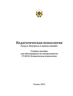 Котлярова М. Н. Педагогическая психология. Раздел «Контроль и оценка знаний» : учебное пособие для обучающихся по специальности 37.05.01 Клиническая психология / М. Н. Котлярова. - Рязань : РязГМУ, 2025. - 152 c. - Текст : электронный // ЭБС "Букап" : [сайт]. - URL : https://www.books-up.ru/ru/book/pedagogicheskaya-psihologiya-razdel-kontrol-i-ocenka-znanij-19493553/ (дата обращения: 30.01.2026). - Режим доступа : по подписке.