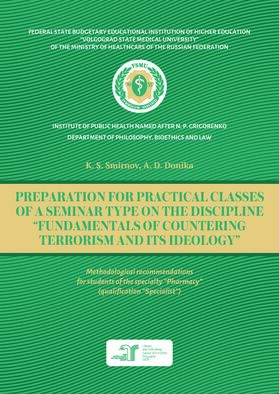 The methodological recommendations have been developed in accordance with the curriculum for the discipline «Fundamentals of countering terrorism and its ideology» of the Federal State Educational Standard of Higher Education 3++ and are intended to prepare students of the specialty «Pharmacy» (qualification «specialist») for practical classes of the seminar type. The content forms the following competencies of students: UC-1.1.2., UC-1.1.3., UC-1.2.1, UC-1.2.2., UC-1.2.3., UC-1.3.1., GPC-1.1.1.