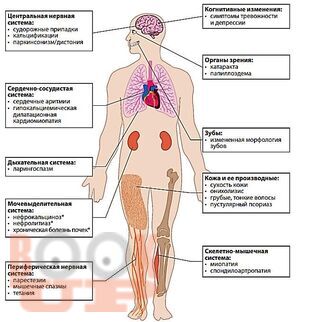 Представлены современные данные о заболеваниях, протекающих с синдромом гипо- и гиперпаратиреоза. Излагаются вопросы этиологии, патогенеза, клиники, диагностики, дифференциальной диагностики и терапии наиболее часто встречаемых нарушений кальций-фосфорного обмена с синдромом гипо- и гиперпаратиреоза.