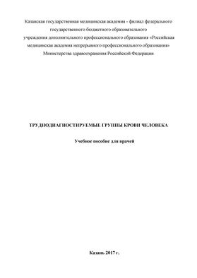 В учебном пособии описаны методы определения труднодиагностируемых групп крови. Данное пособие предназначено для врачей клинической лабораторной диагностики, обучающихся на сертификационных циклах, циклах общего и тематического усовершенствования врачей КГМА – филиал ФГБОУ ДПО «РМАНПО Минздрава России»